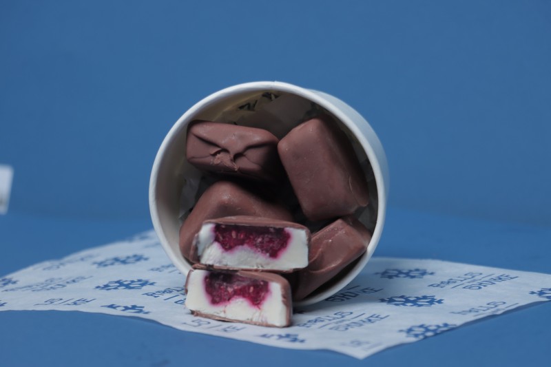 (160 سعرة حرارية)4 قطع من الايسكريم الفانيلا مع توت مشكل مغلف ب طبقة من التشوكلت