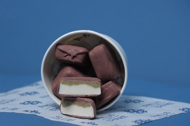 (160 سعرة حرارية)4 قطع من الايسكريم فانيلا مع الكنافة والبستاشيو مغلف ب طبقة من التشوكلت